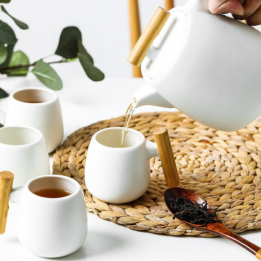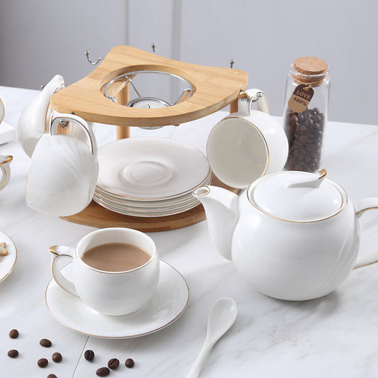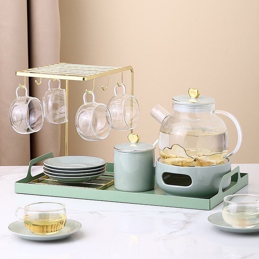 طقم شاي مع ستاند خشبي وقاعدة شمع