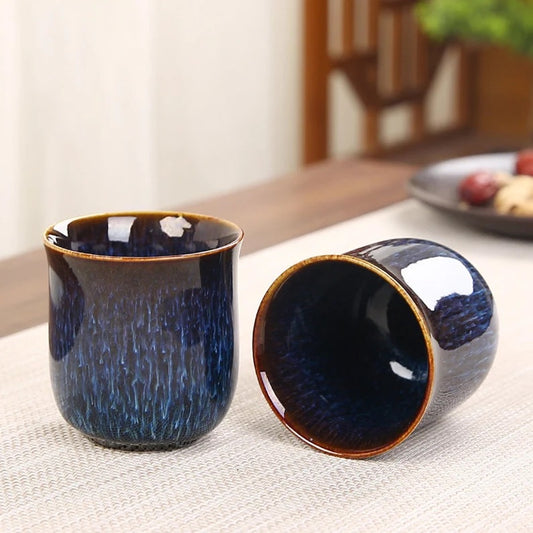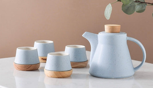 طقم شاي على الطريقة اليابانية باللون الأزرق الداكن