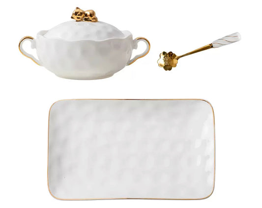 طقم للحلويات والسنكس بلون وردي مع ابيض