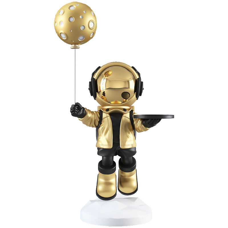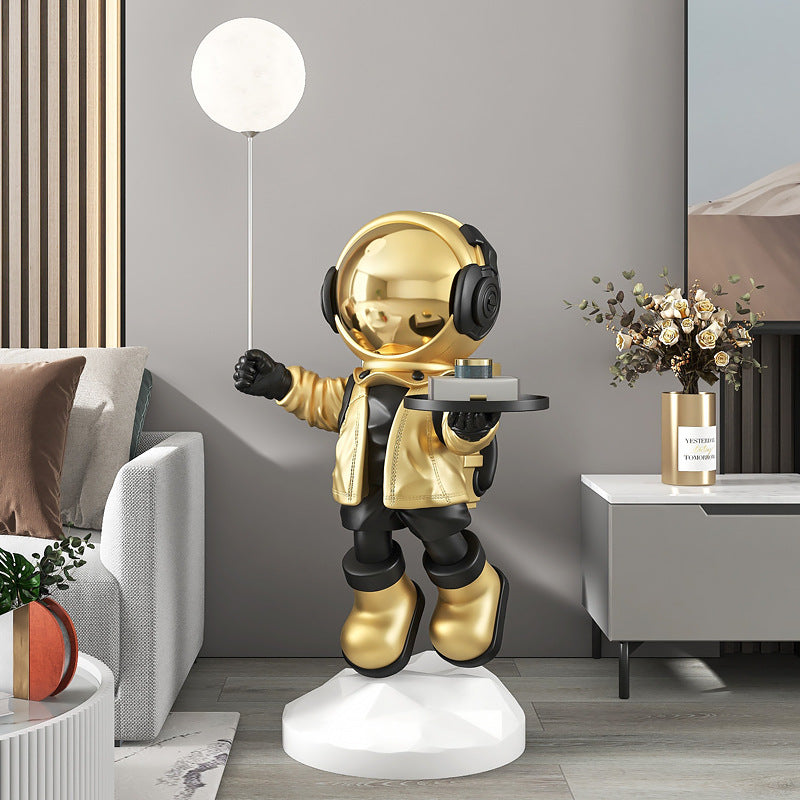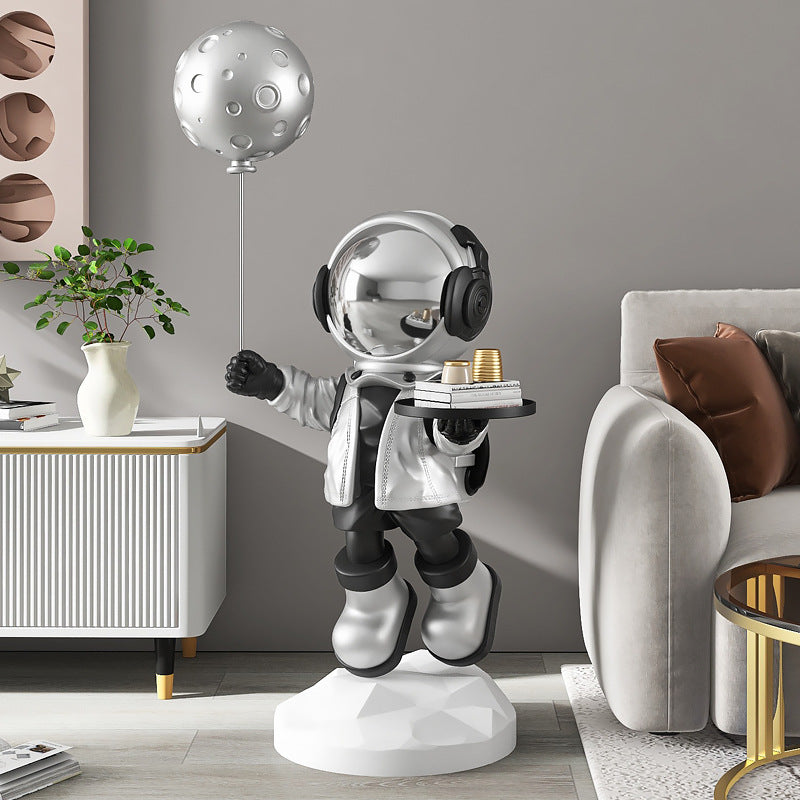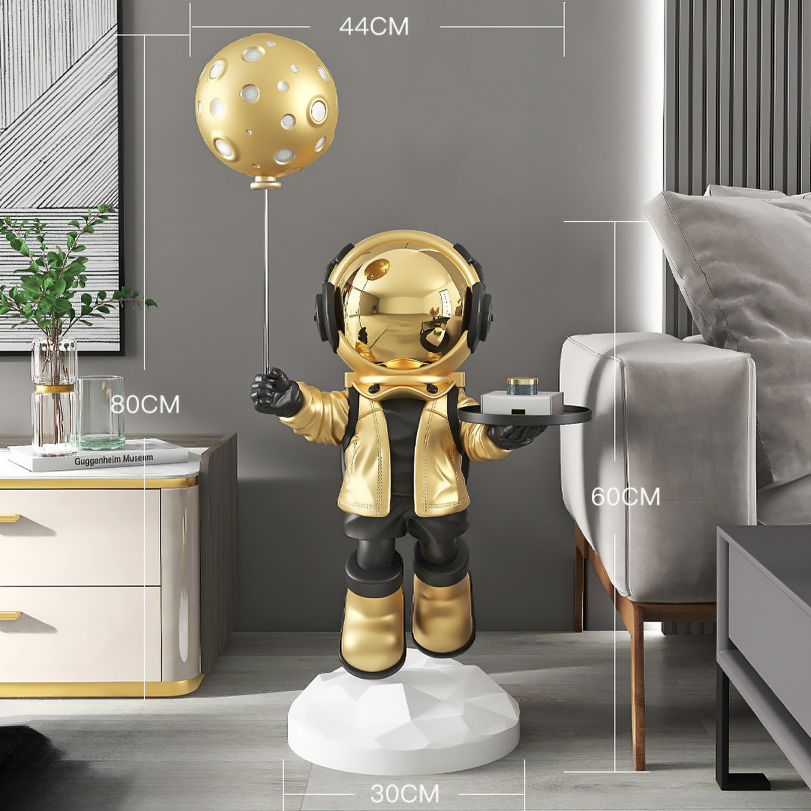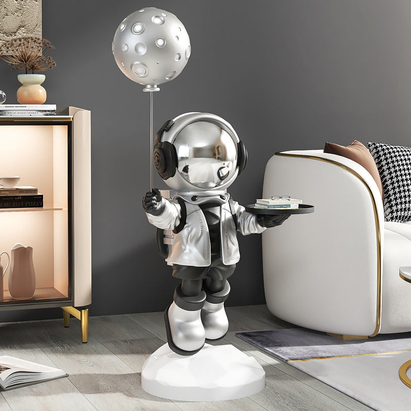 رائد الفضاء يحمل بالون ، تحفة فنية رائعة مصنوعة يدويًا من الراتنج المتين ، مناسب لغرف المعيشة والمكتب.