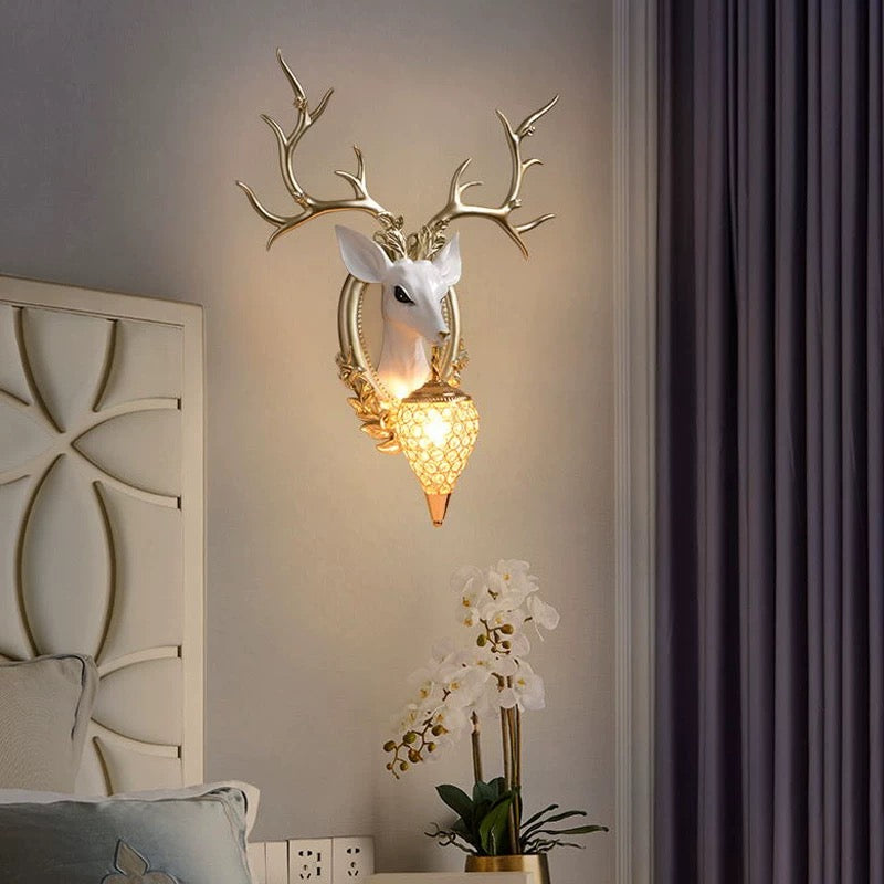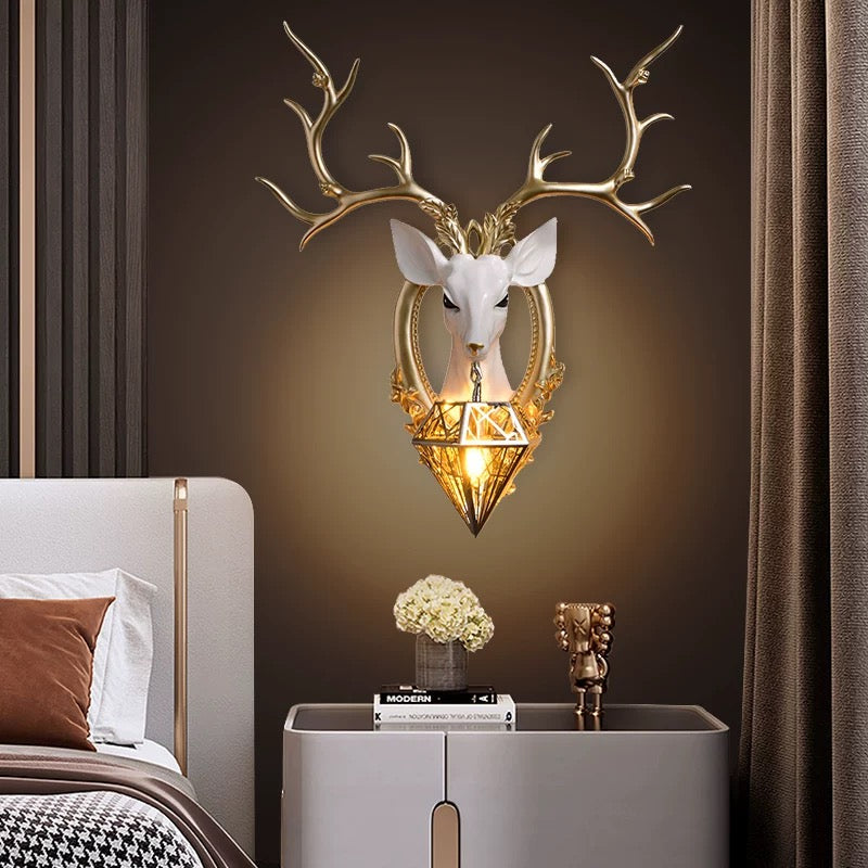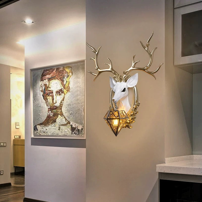 غزال يحمل مصباح، ديكور حائط يعمل بالكهرباء.