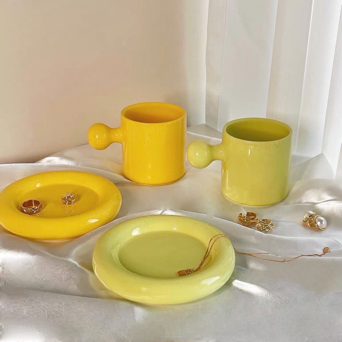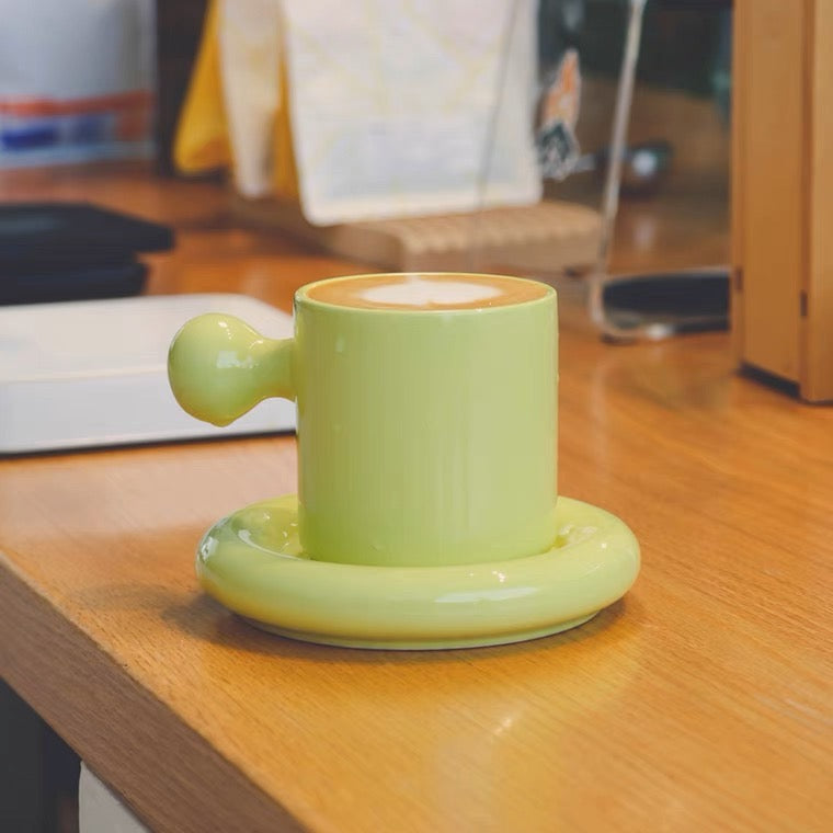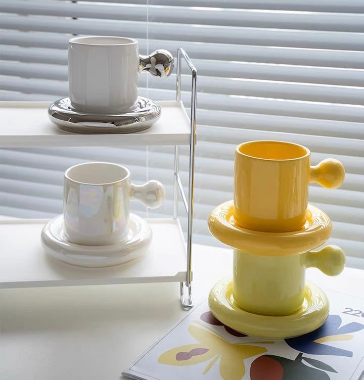 شاي القهوة او الشاي ، كوب مع صحن
