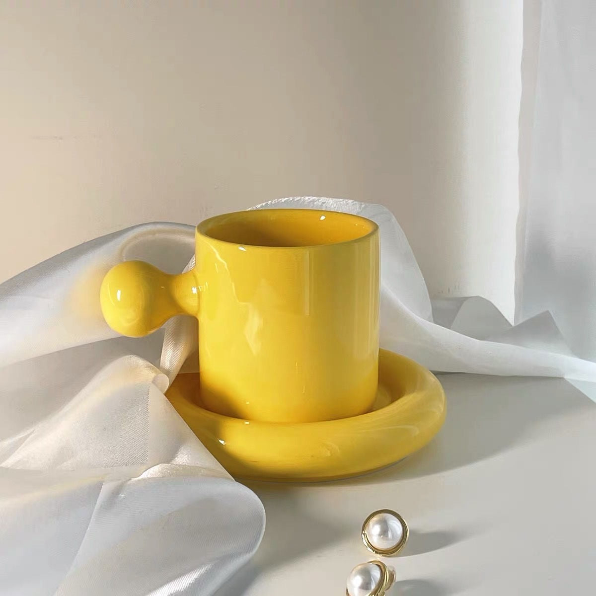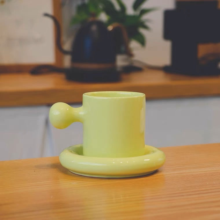 كوب قهوة بمسكه على شكل كره