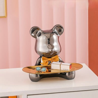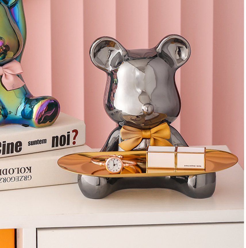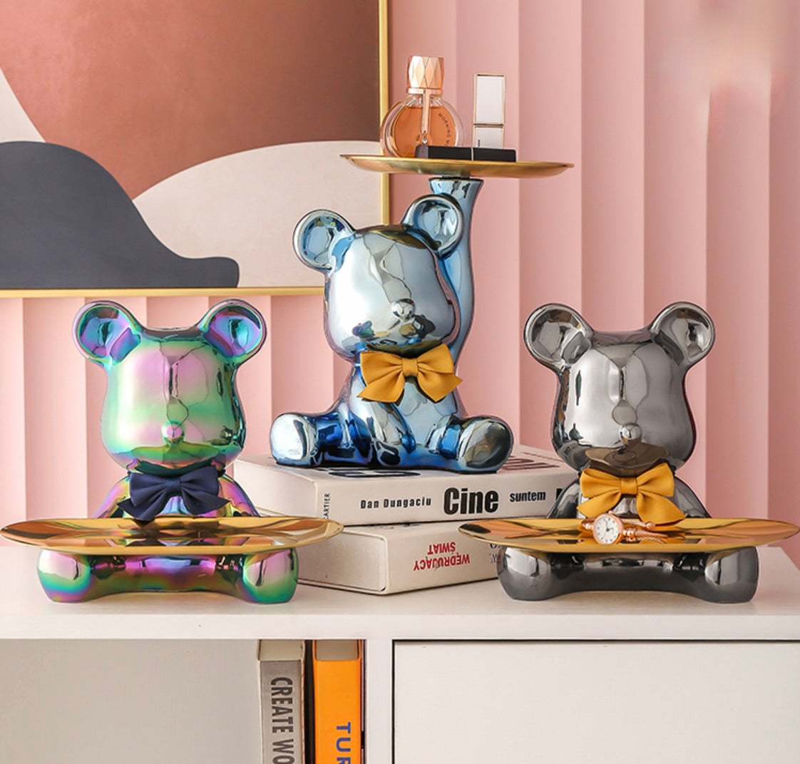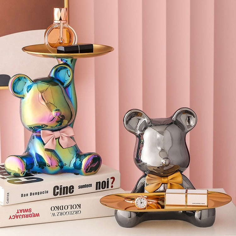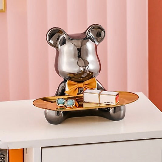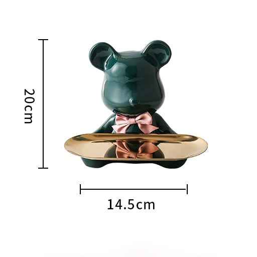 تحفة دبدوب صغير مع صينية لحمل المفاتيح والمجوهرات ، مصنوع من السيراميك.