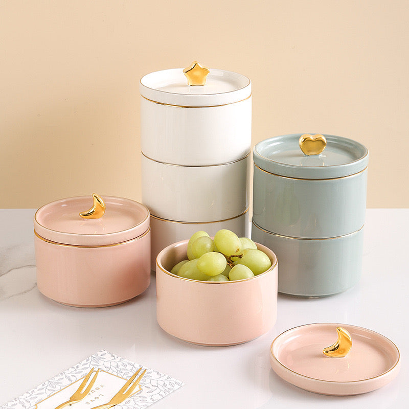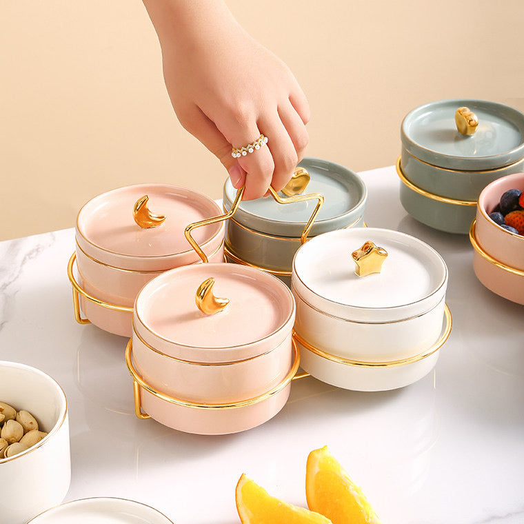 حلوى / فواكه / صينية وجبات خفيفة ، مصنوعة من الزجاج الملون ، طقم أوعية مغطاة.