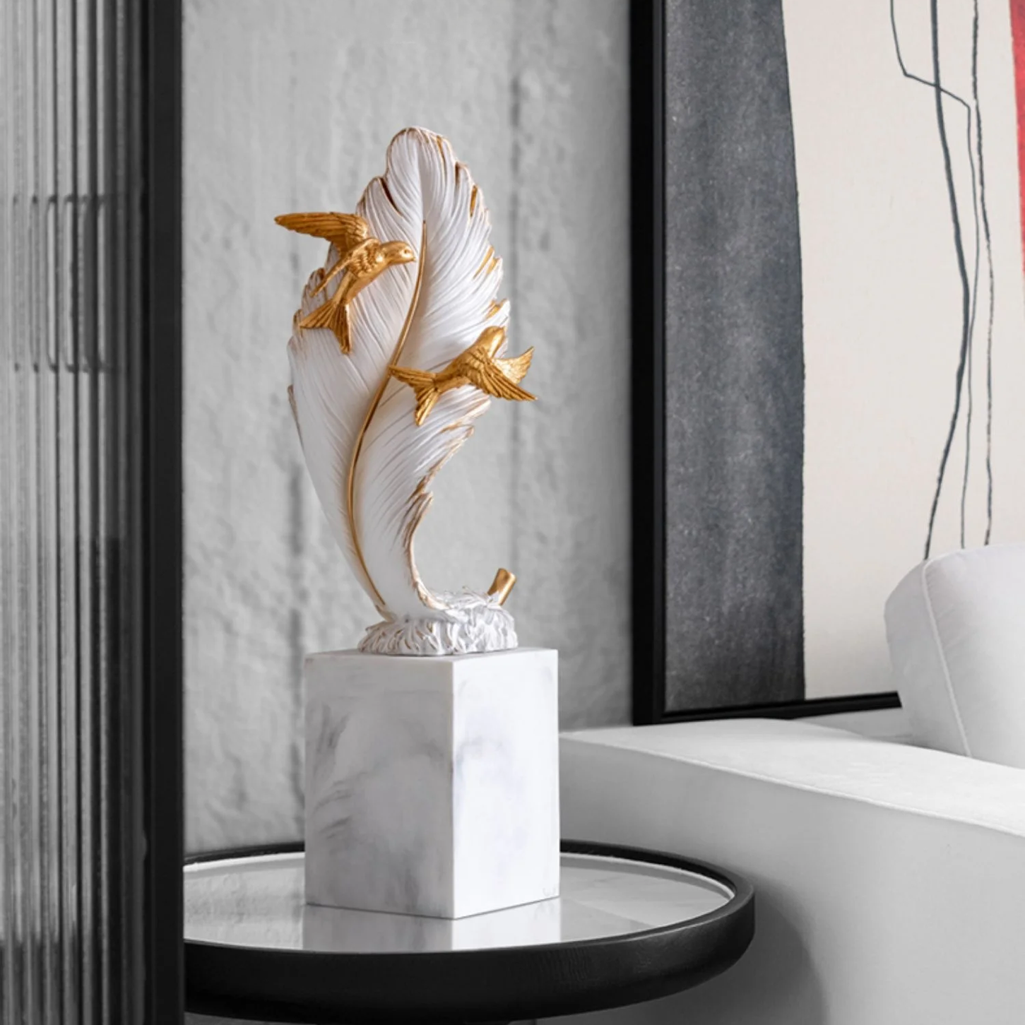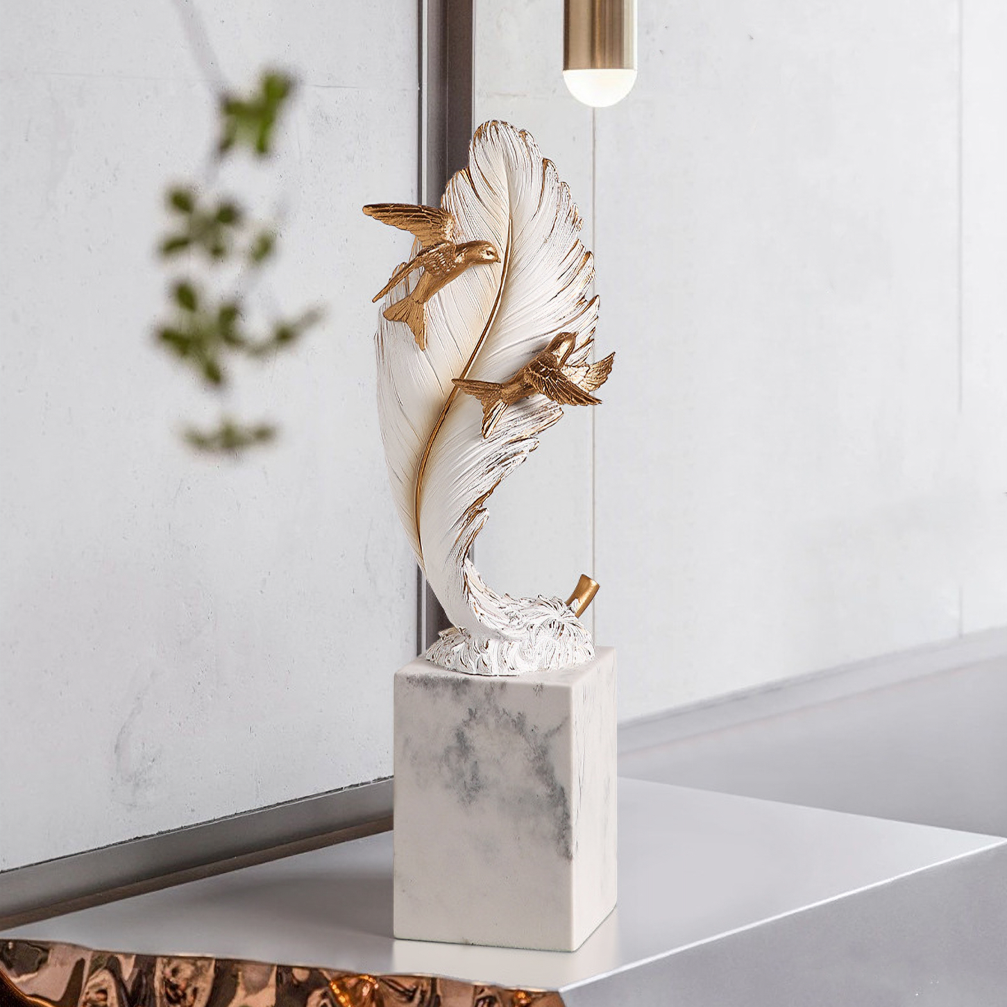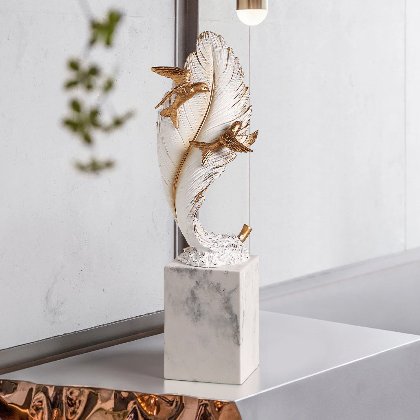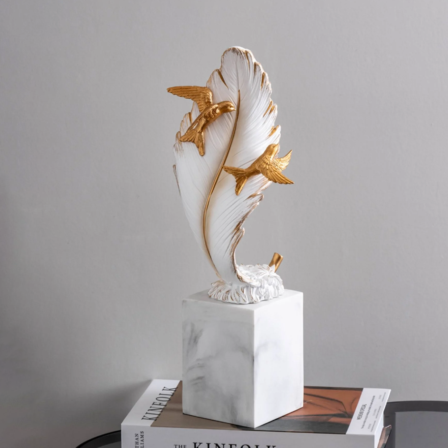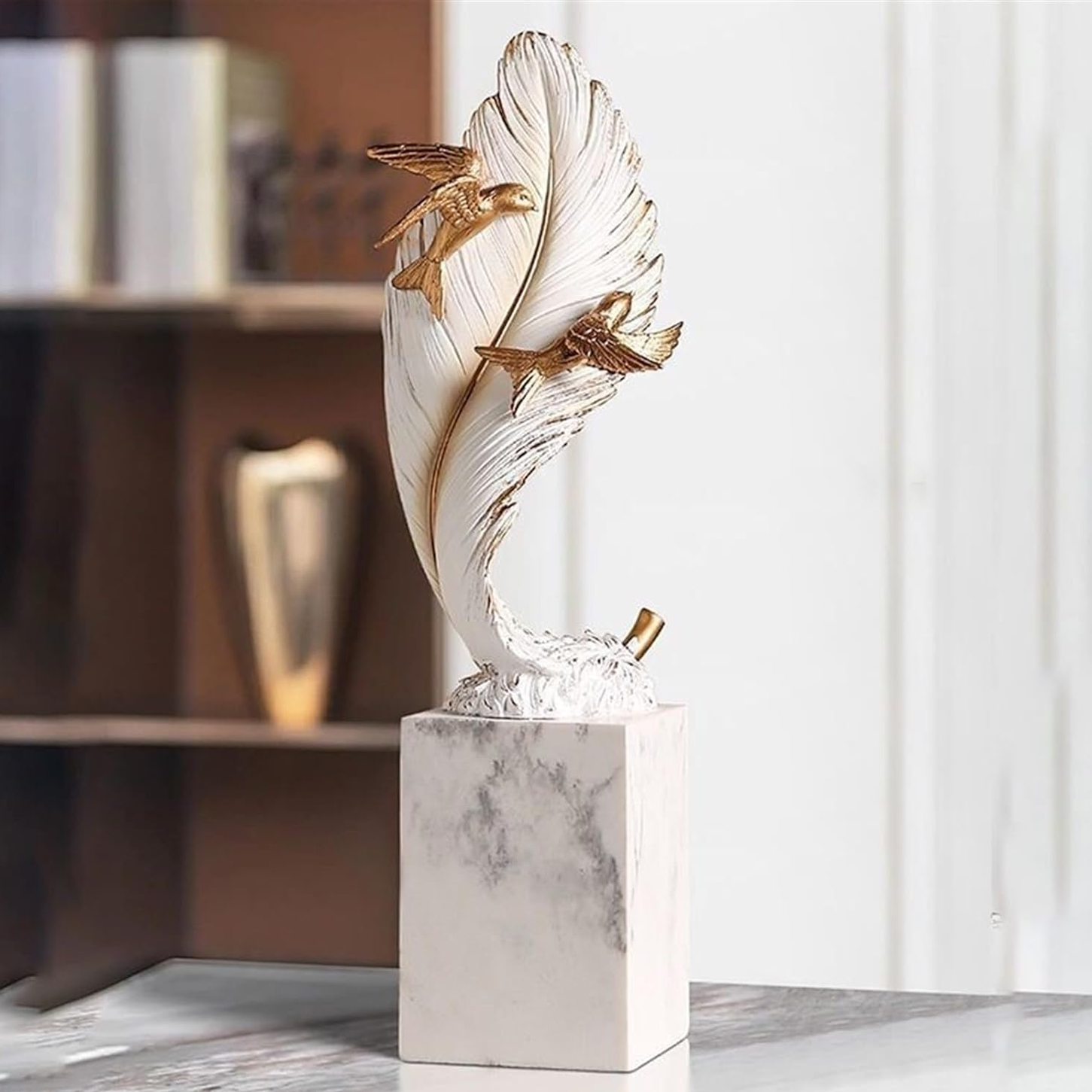 تحفة الريشة الفخمة ، تحمل معنى جميل ، مصنوعة يدويا من الراتنج.