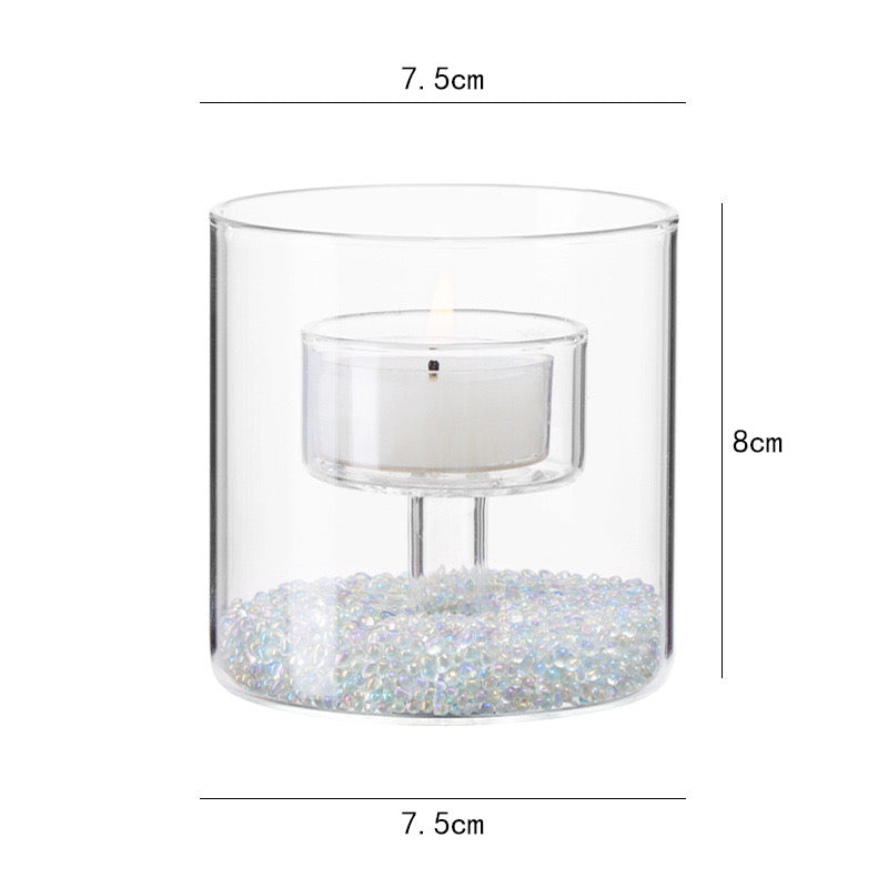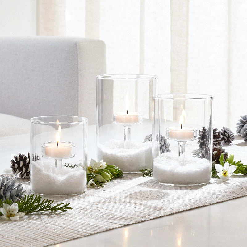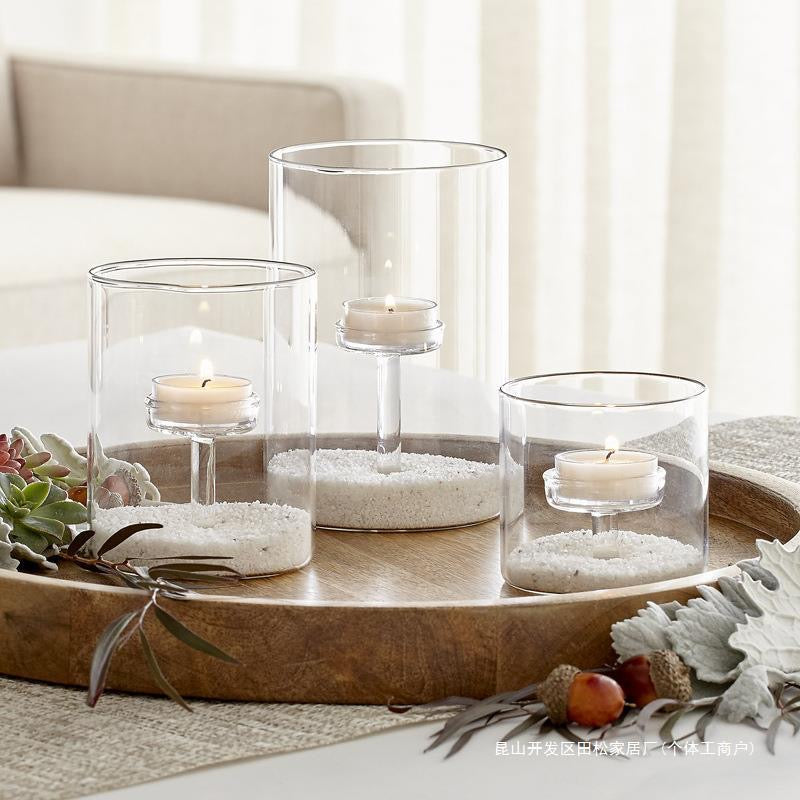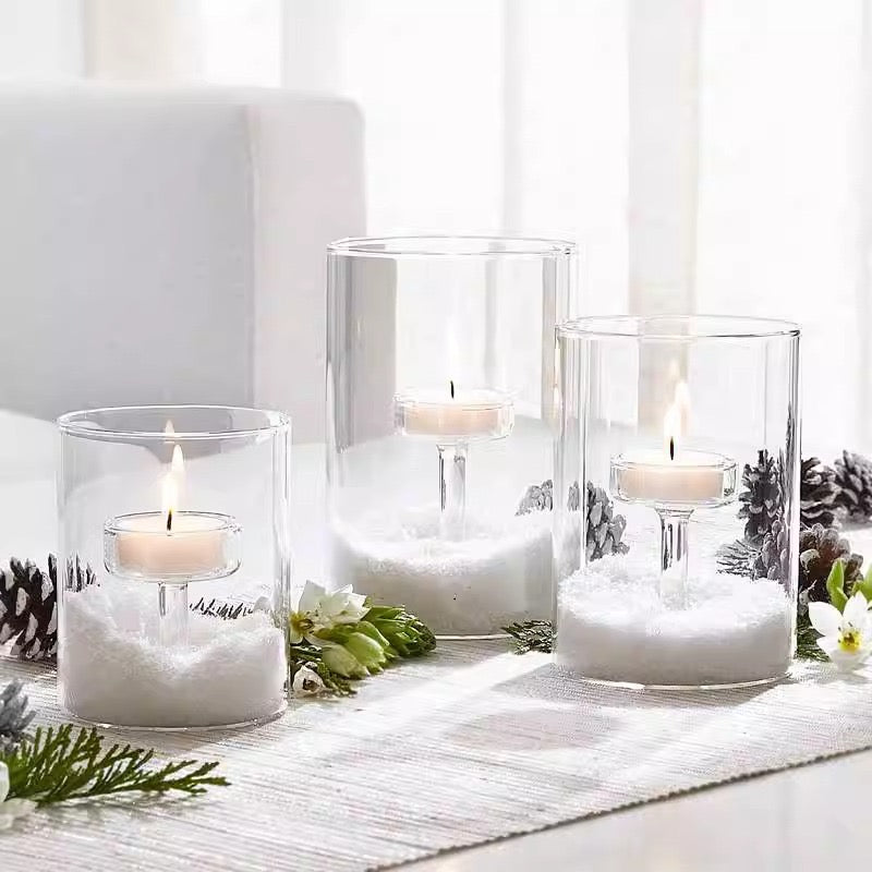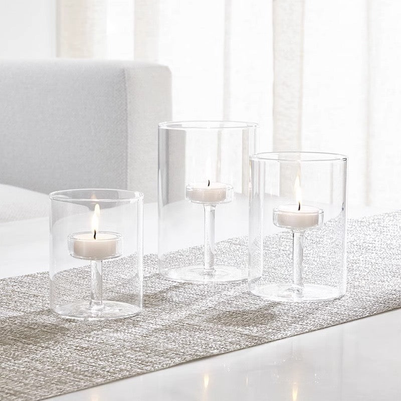 طقم من ثلاث قطع حاملات للشموع ، مصنوع من الزجاج
