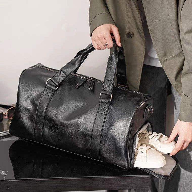 حقيبة جلدية سوداء عالية الجودة مع جيب حذاء