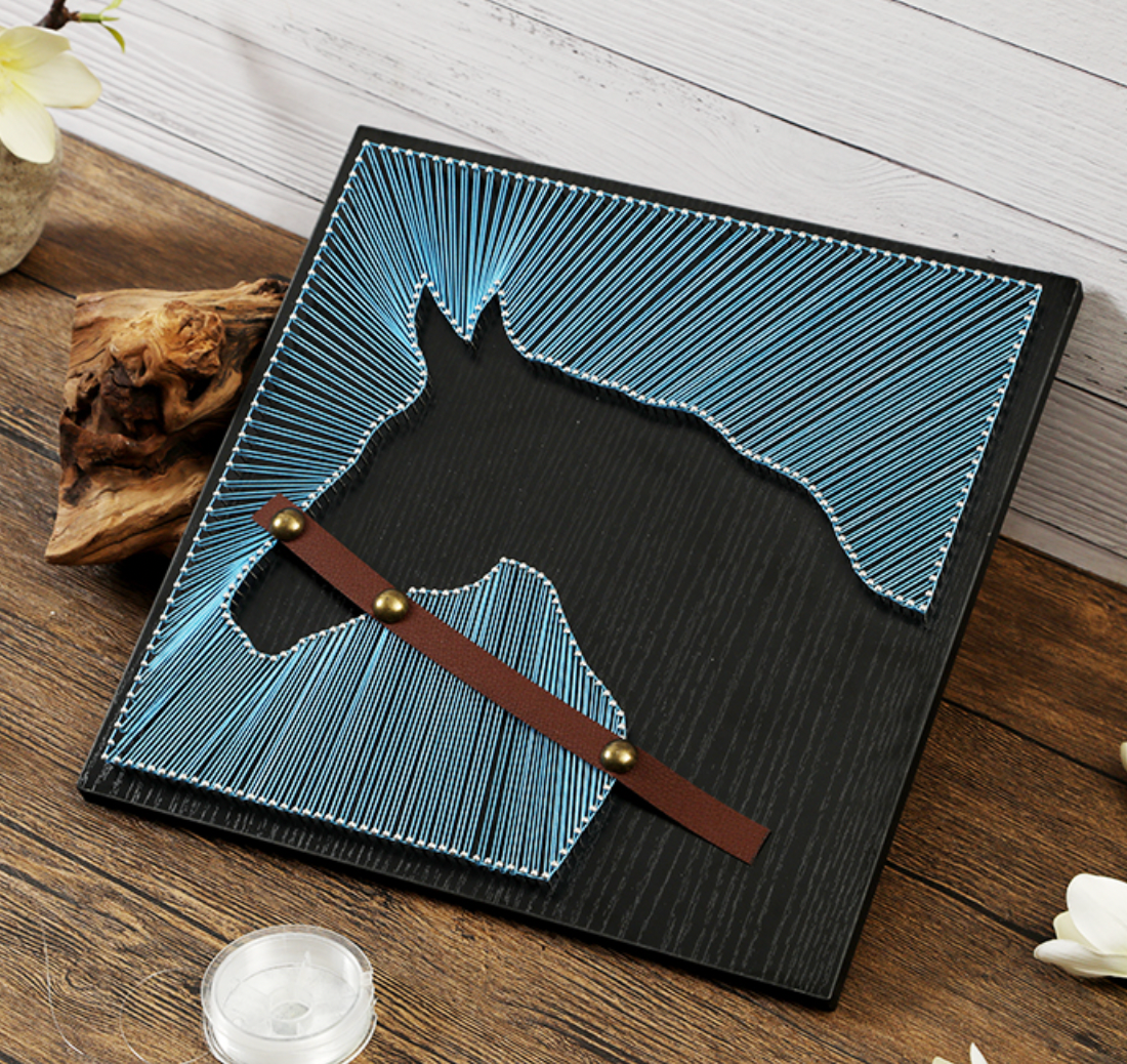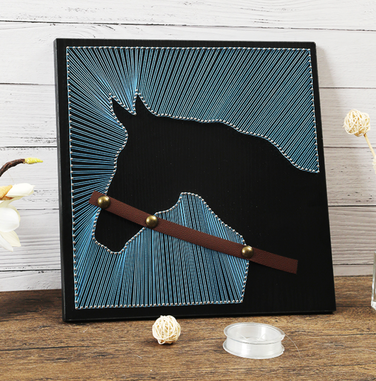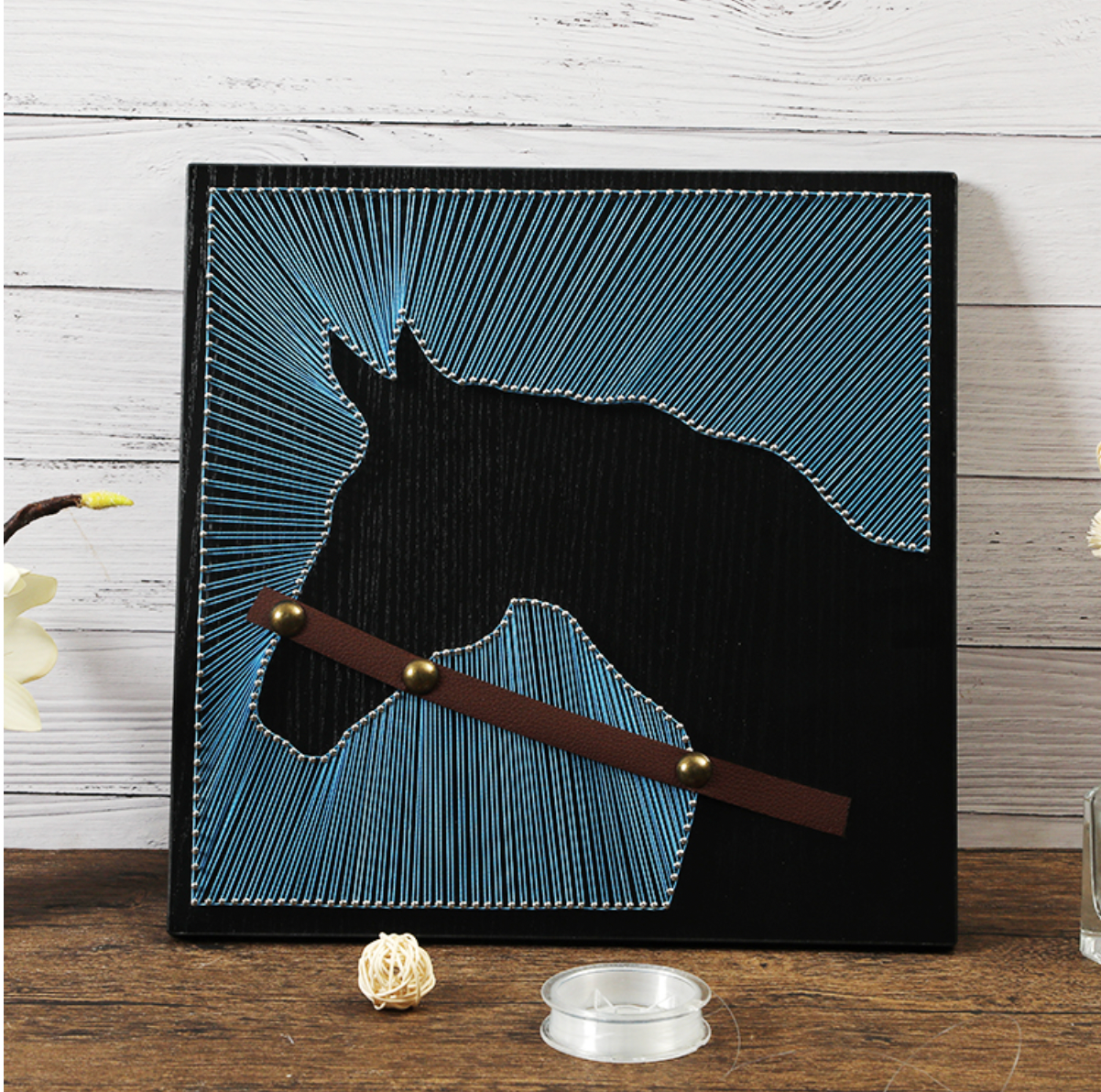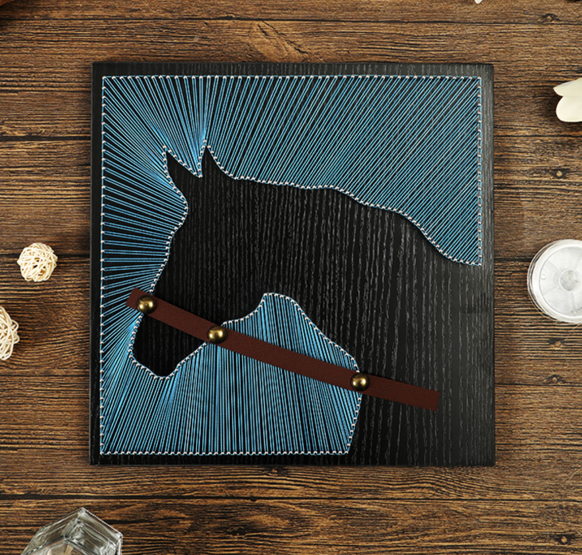 لوحة خيل مصنوعة يدويا من الخيوط والمسامير