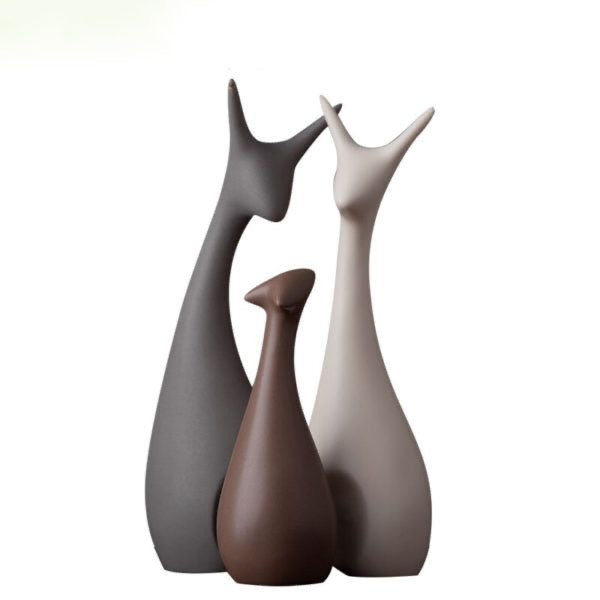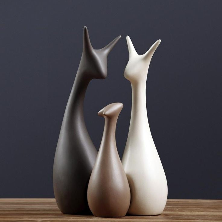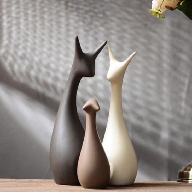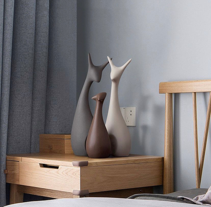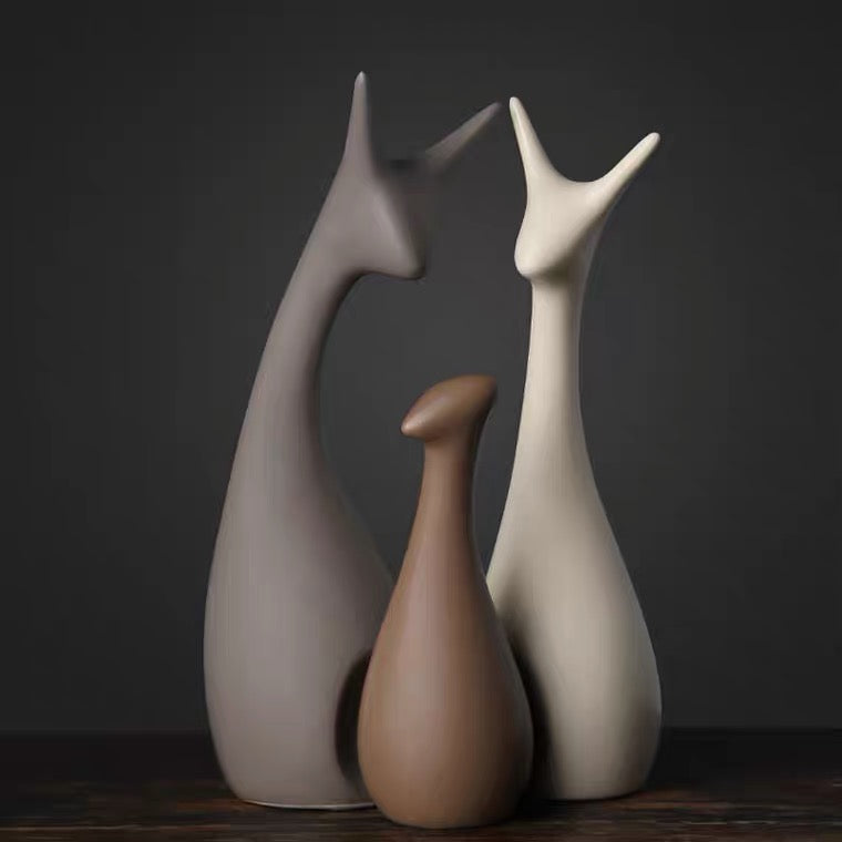 ثلاثة غزلان بتصميم ابداعي ، مصنوعة يدويا من السيراميك عالي الجودة ، مناسبة لتزيين الطاولة او الأرفف او المكتب.