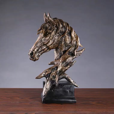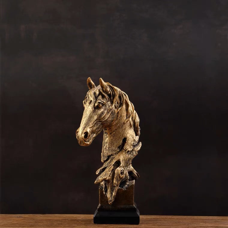 رأس الحصان ، مصنوعة من الراتنج الطبيعي ، اللون الذهبي ، صناعة يدوية بحتة. المواد: الراتنج الطبيعي.