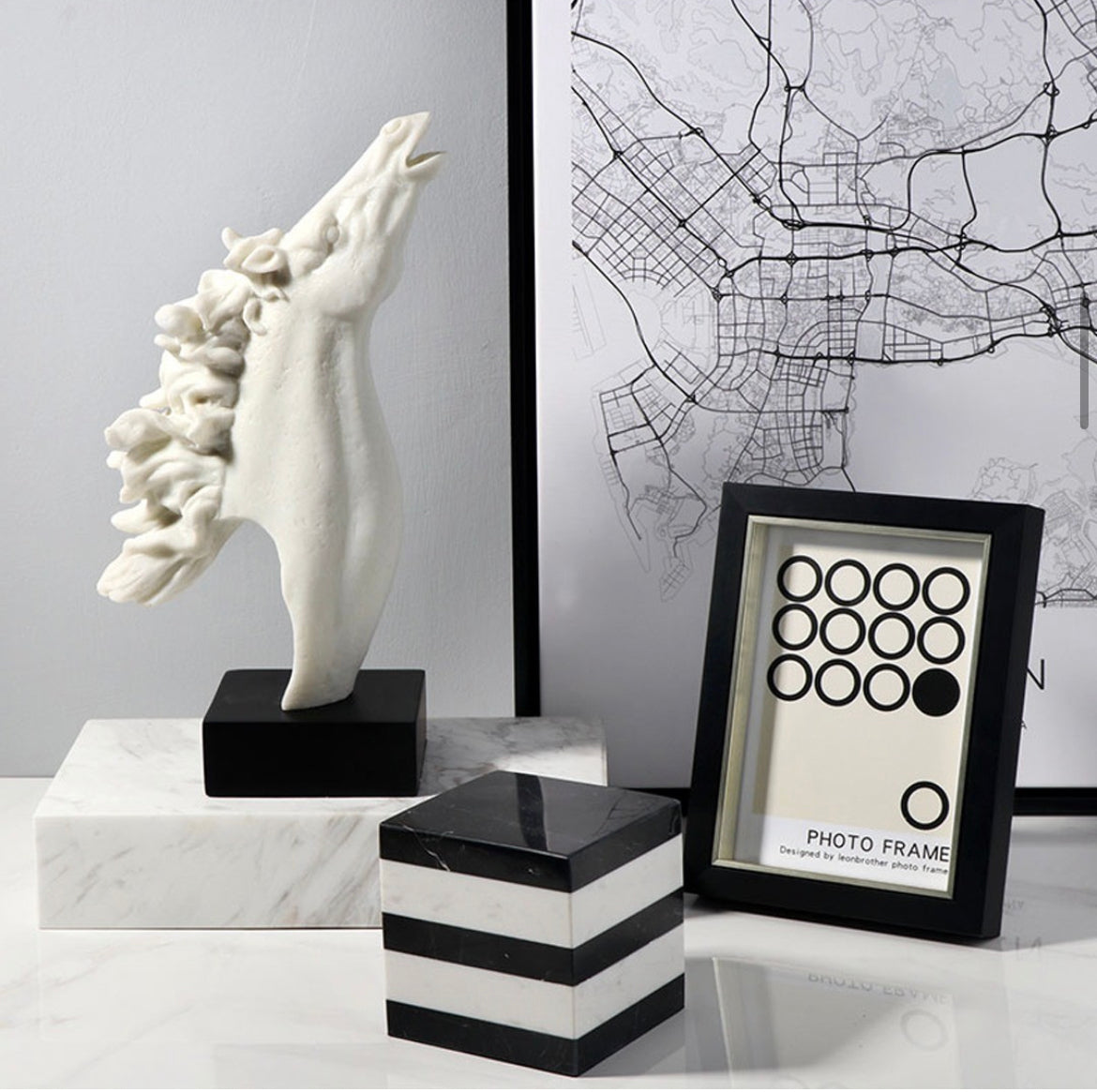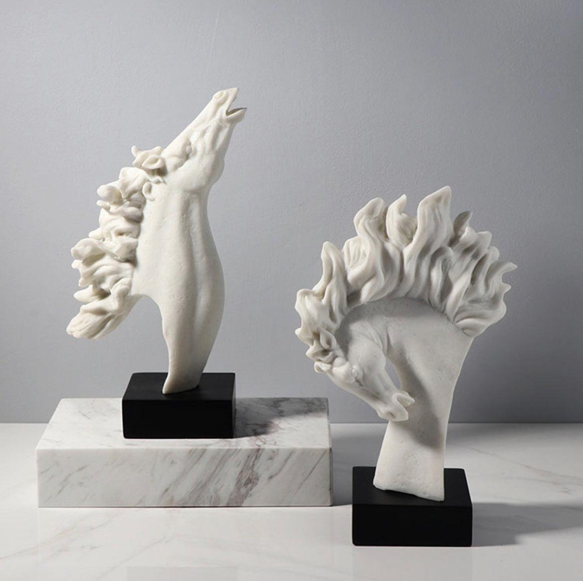 طقم حصان مكون من قطعتين مصنوع من الحجر الرملي على طراز وابي سابي الياباني وزن ثقيل وجودة عالية.
