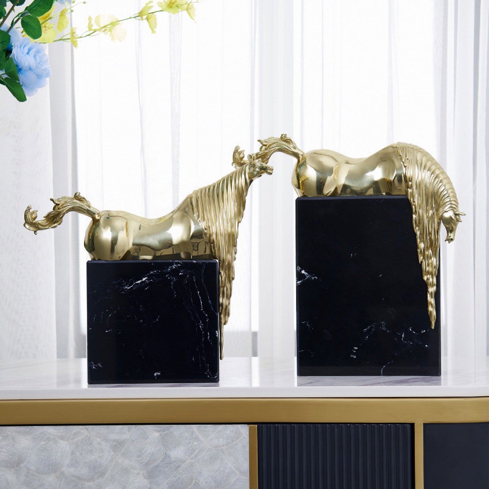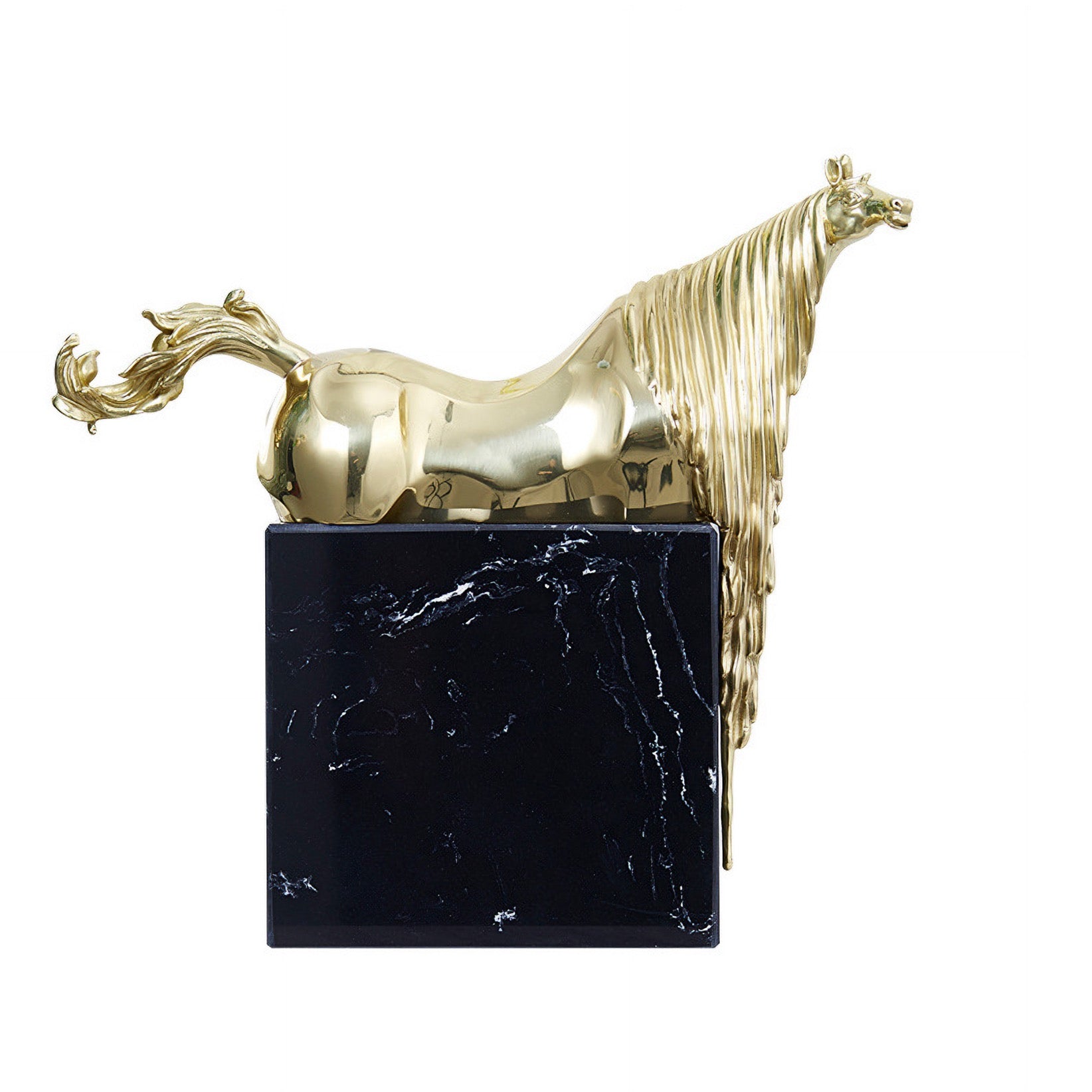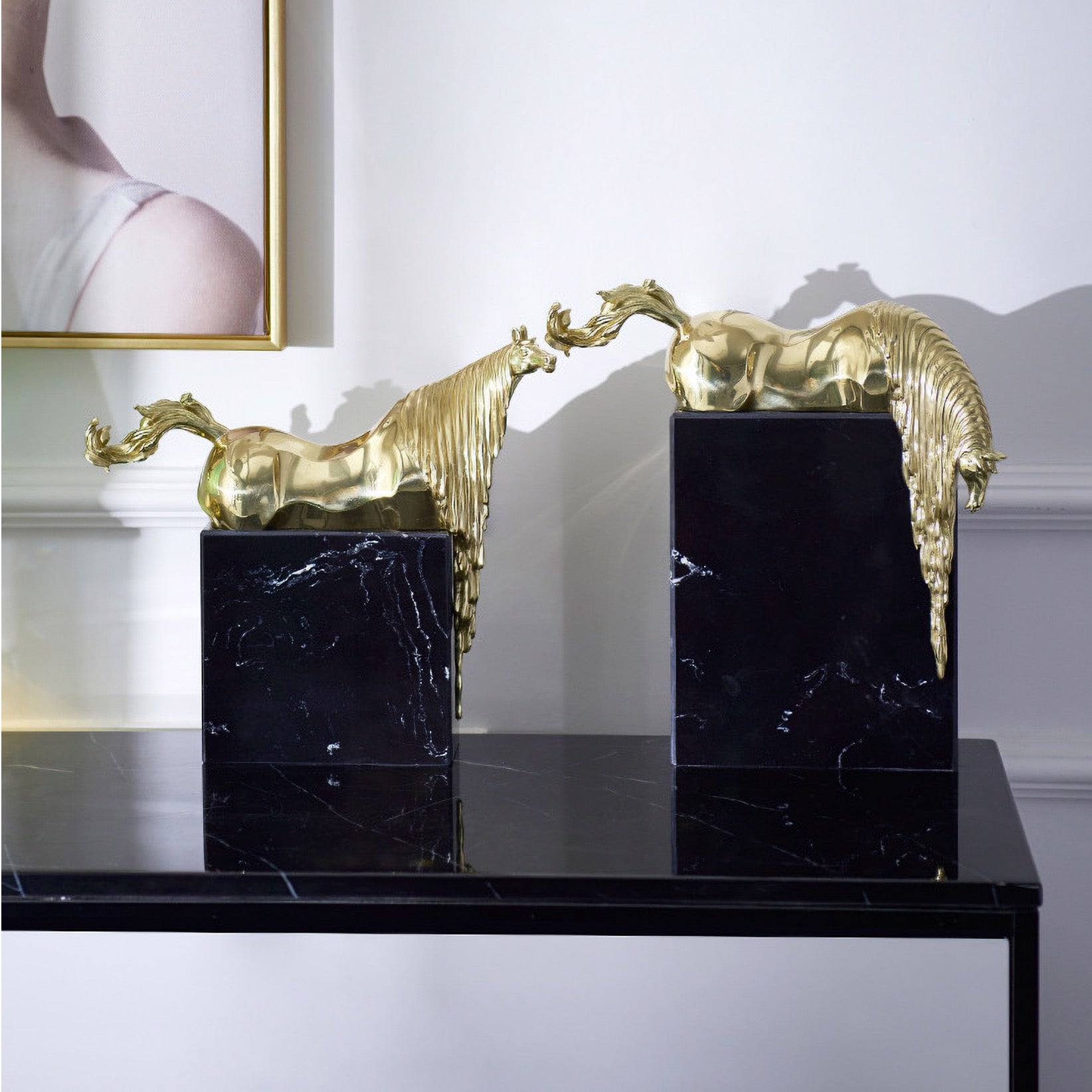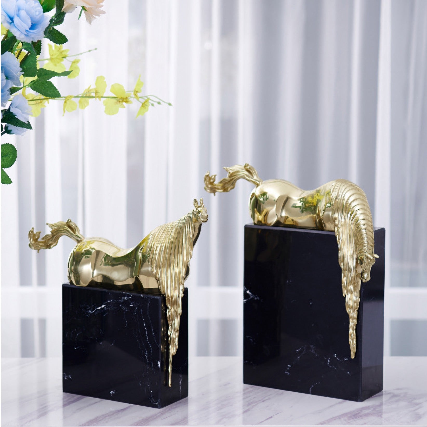 طقم احصنة ذهبية مصنوعة من النحاس الخام مع قاعدة رخامية.