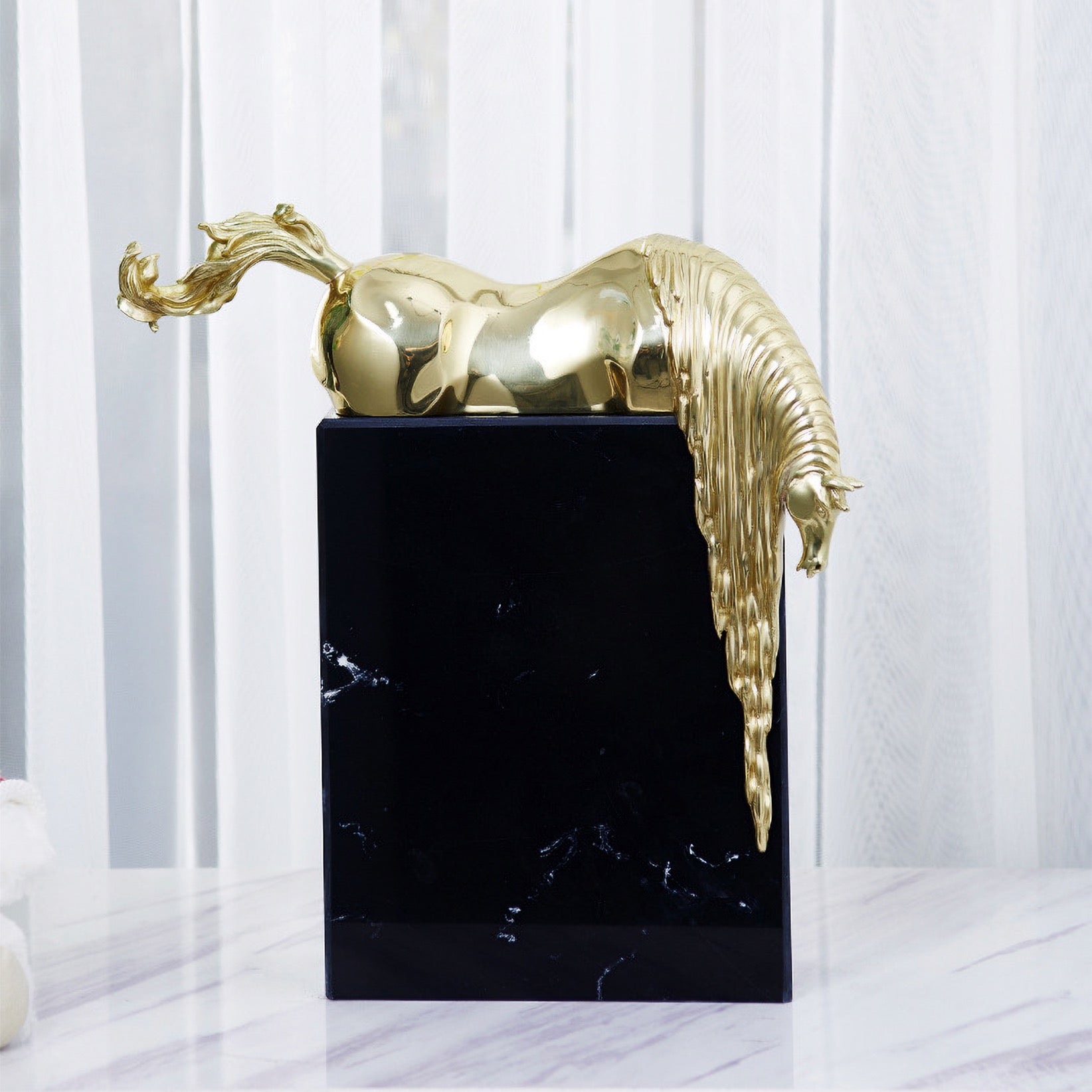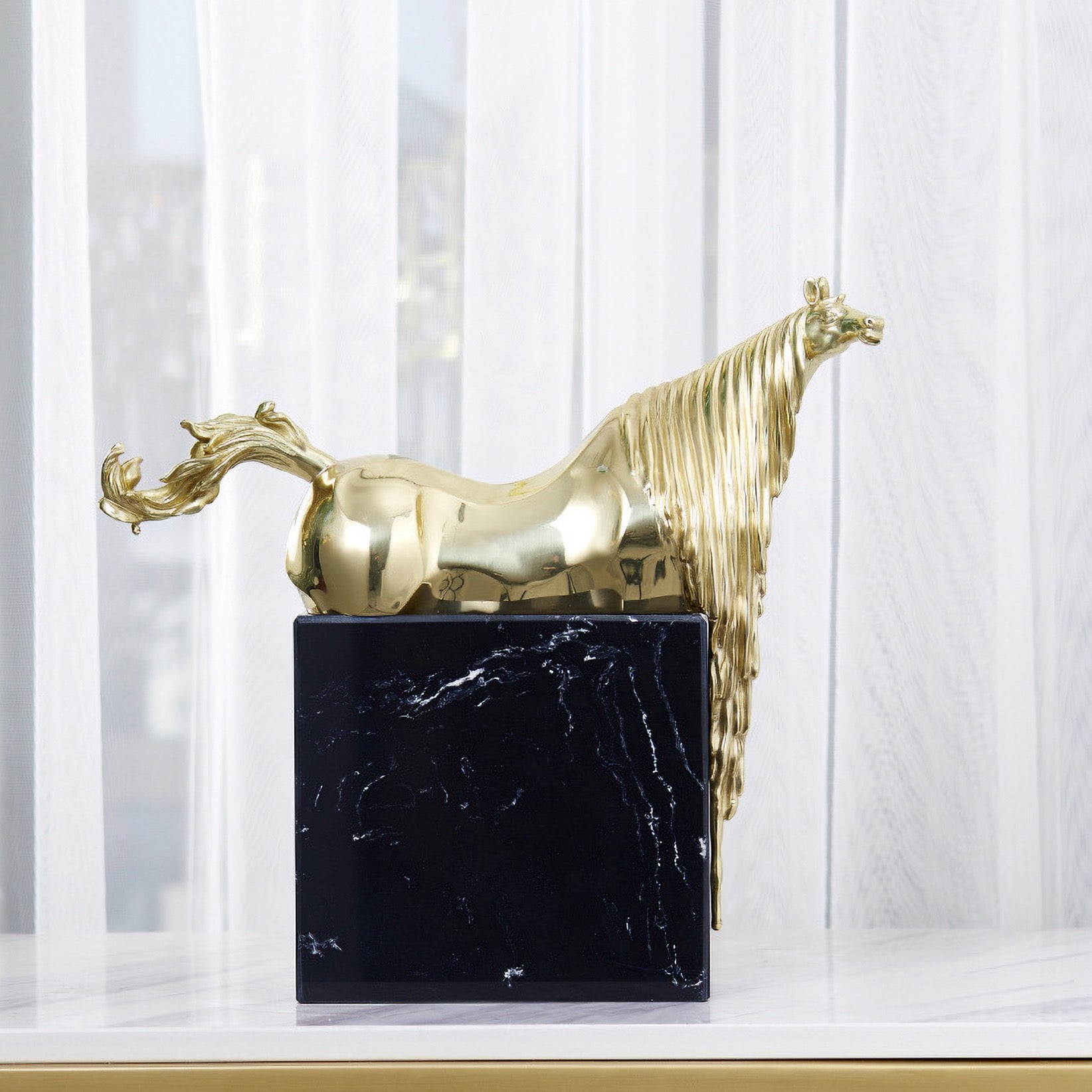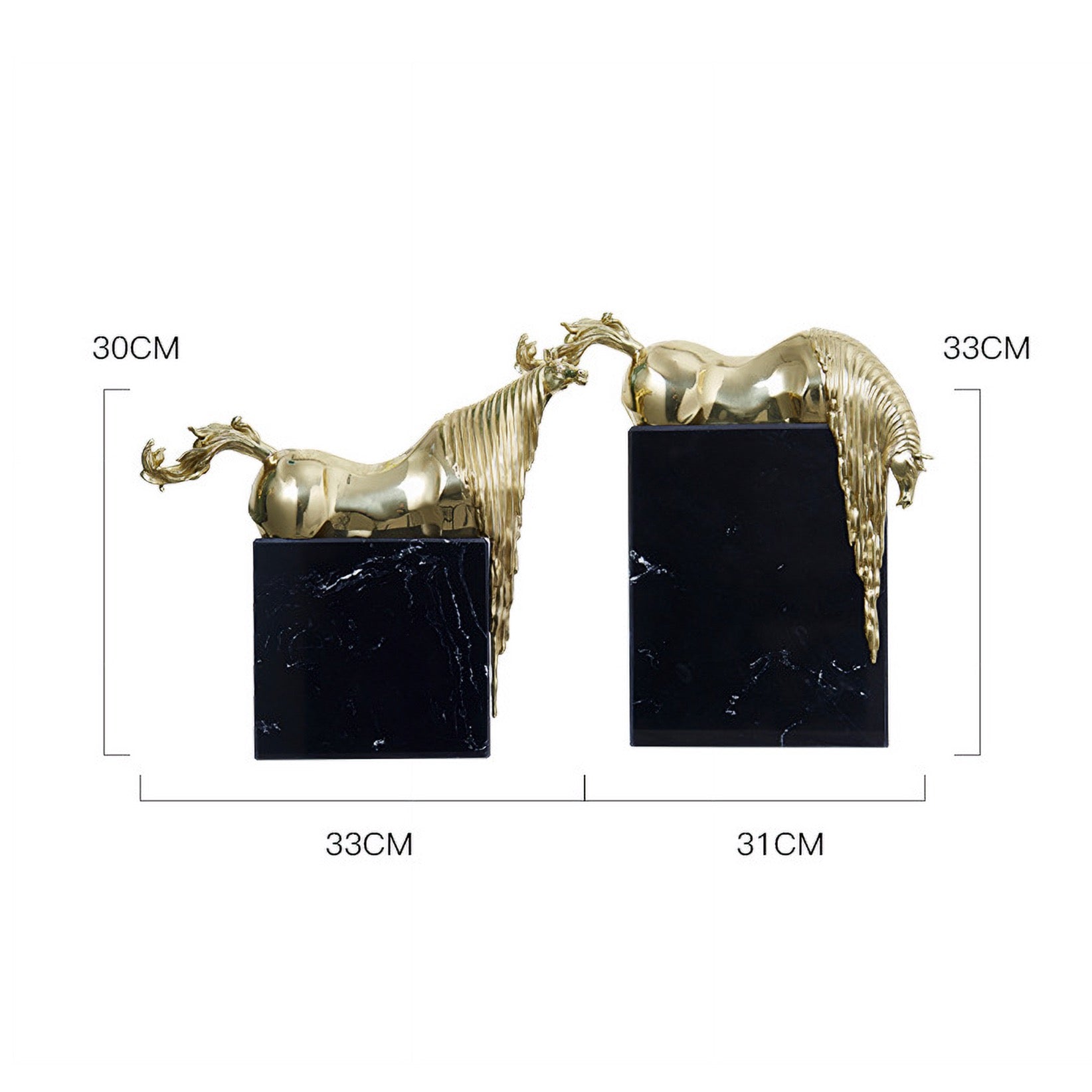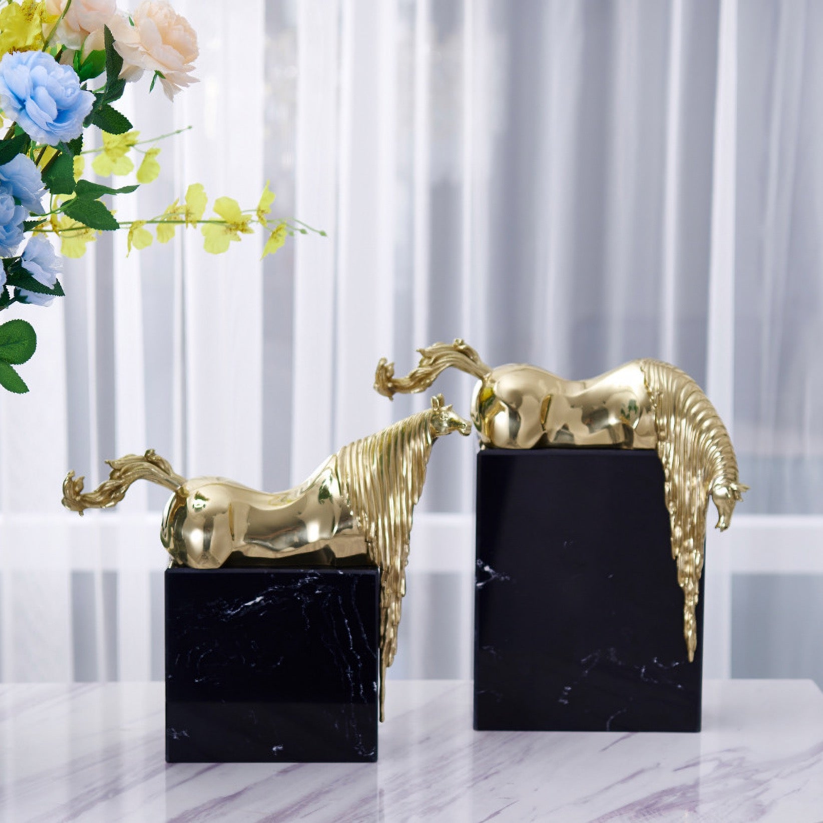 طقم احصنة ذهبية مصنوعة من النحاس الخام مع قاعدة رخامية.