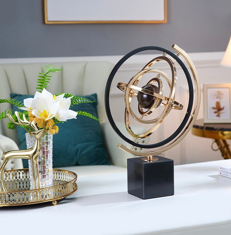 تحفة الكرة الأرضية الرخامية، مصنوعة من الحديد والرخام.