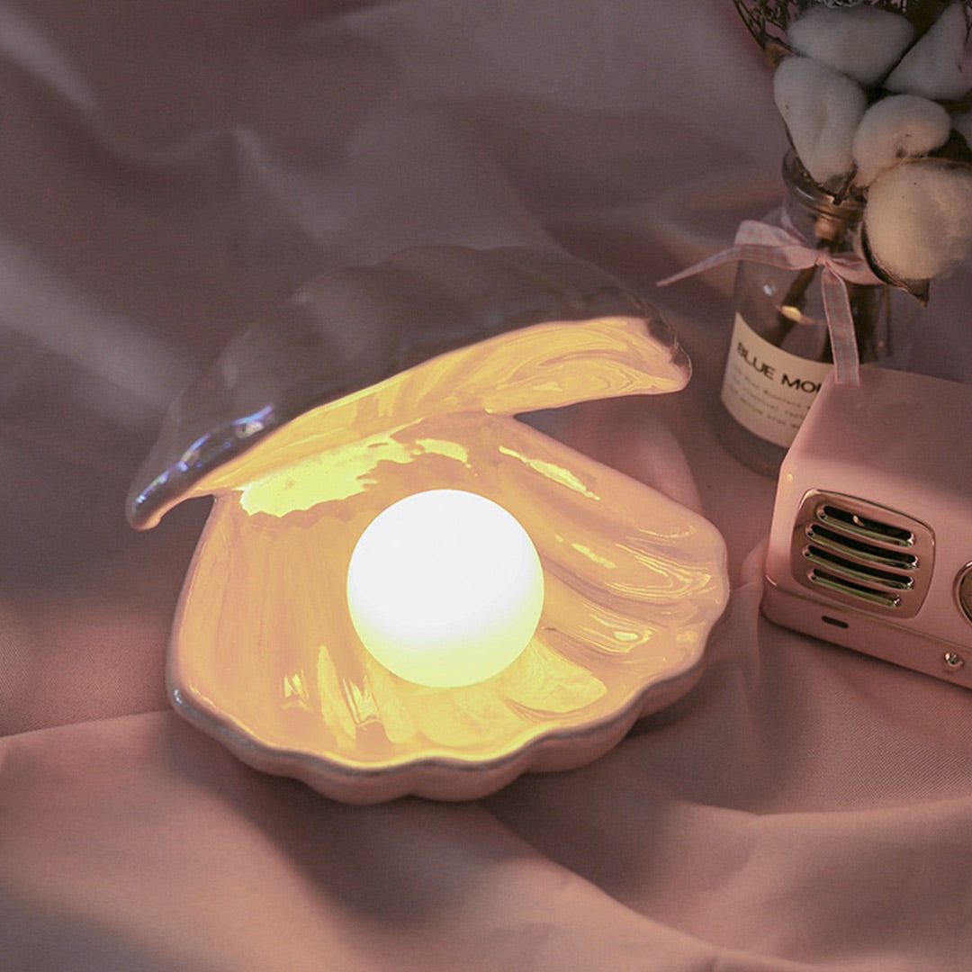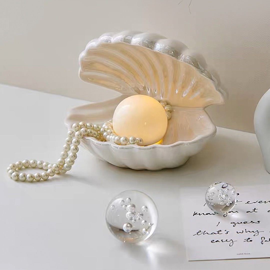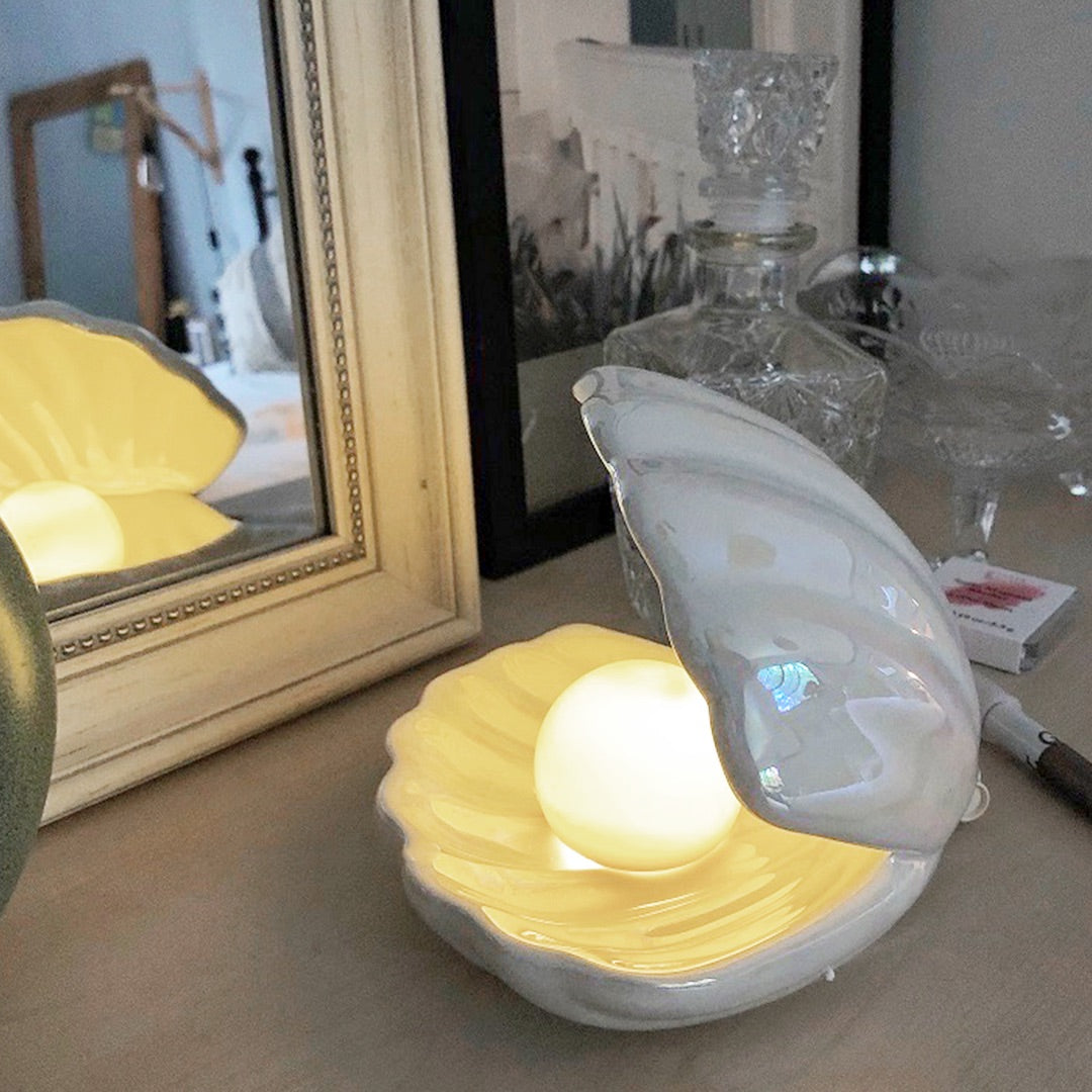 لؤلؤة جميلة باضاءه دافئة ، مصنوعة من الخزف ، اضاءه تعمل بالبطارية .