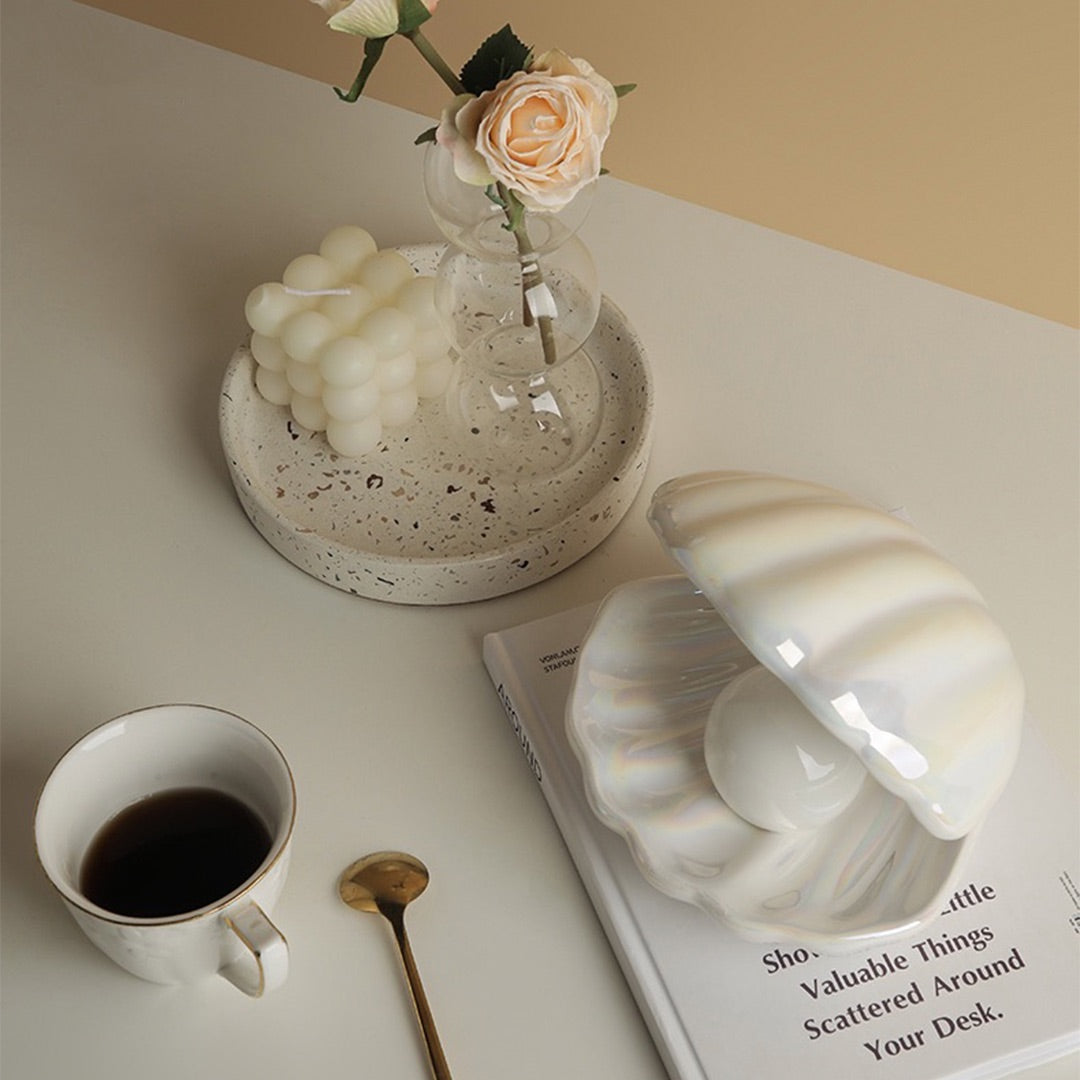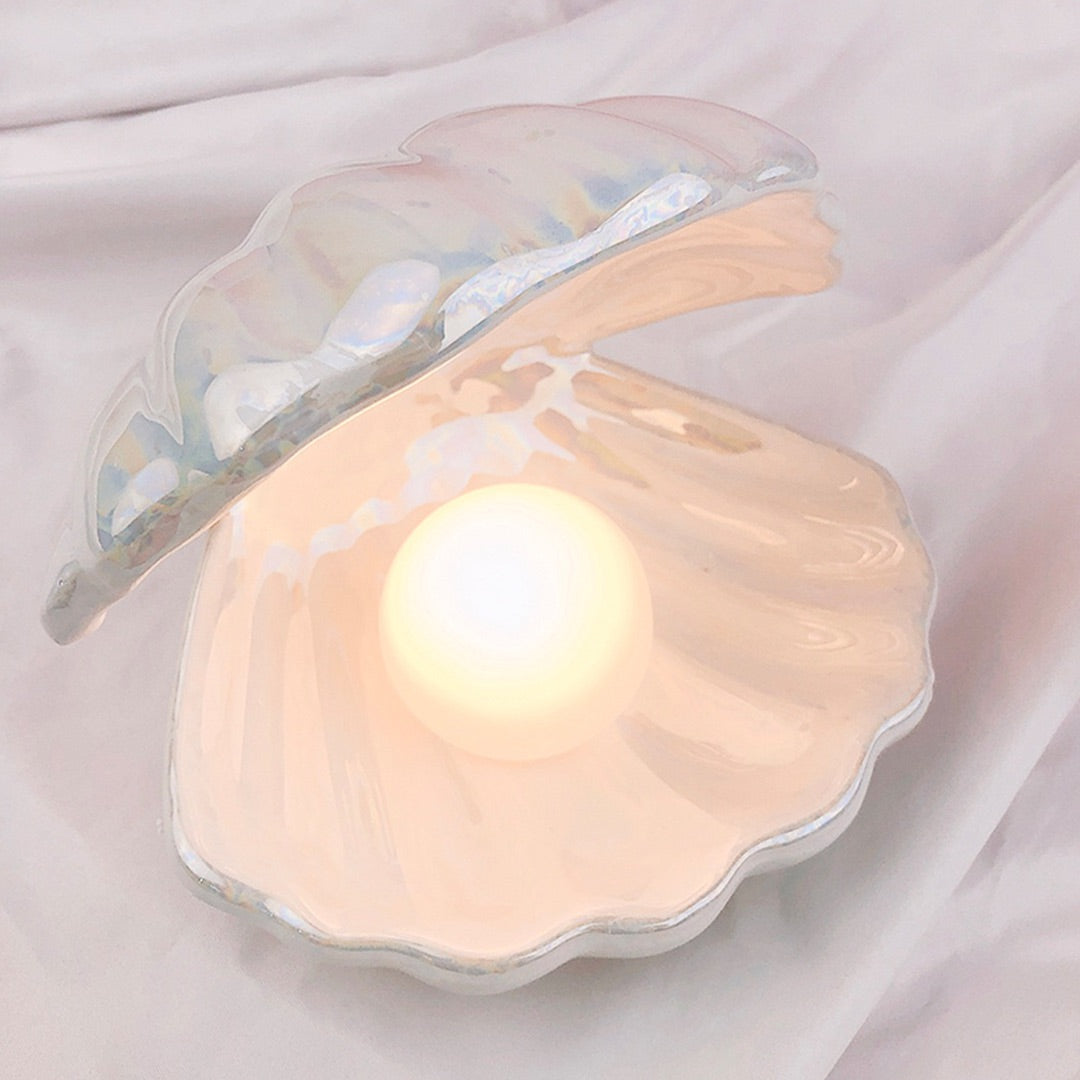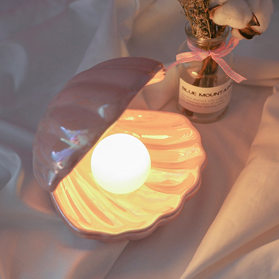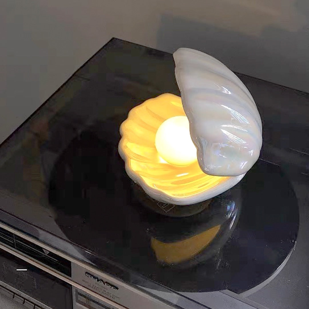 لؤلؤة جميلة باضاءه دافئة ، مصنوعة من الخزف ، اضاءه تعمل بالبطارية .