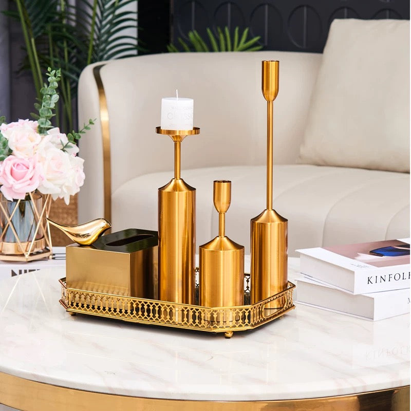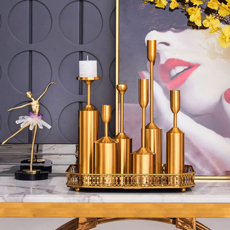 طقم شمعدان معدني على الطراز الأوروبي مناسب لغرفة المعيشة وطاولة الطعام والديكورات الرومانسية الناعمة.