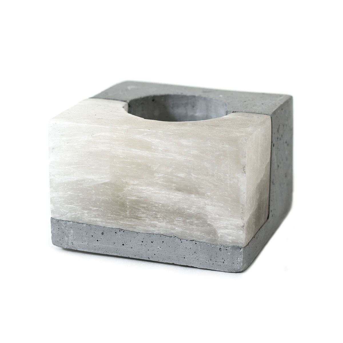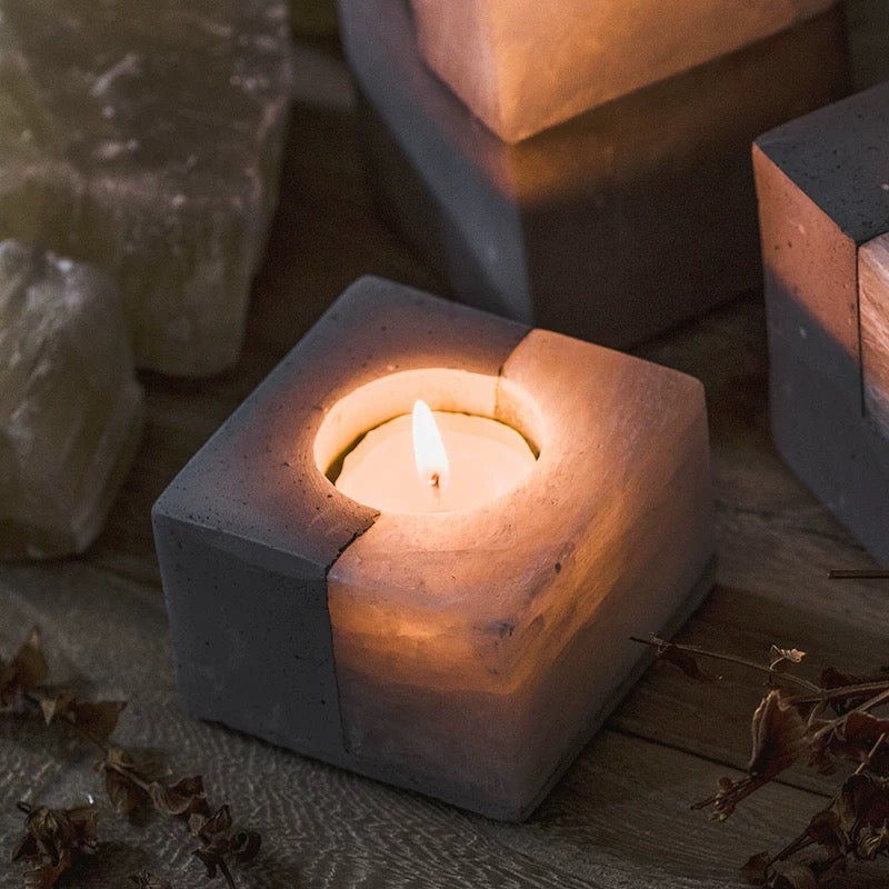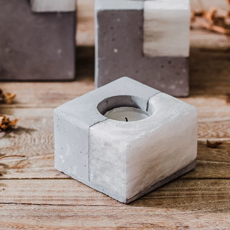 حامل شموع حجري مربع ، ملمس ناعم وطبيعي ، صناعة يدوية