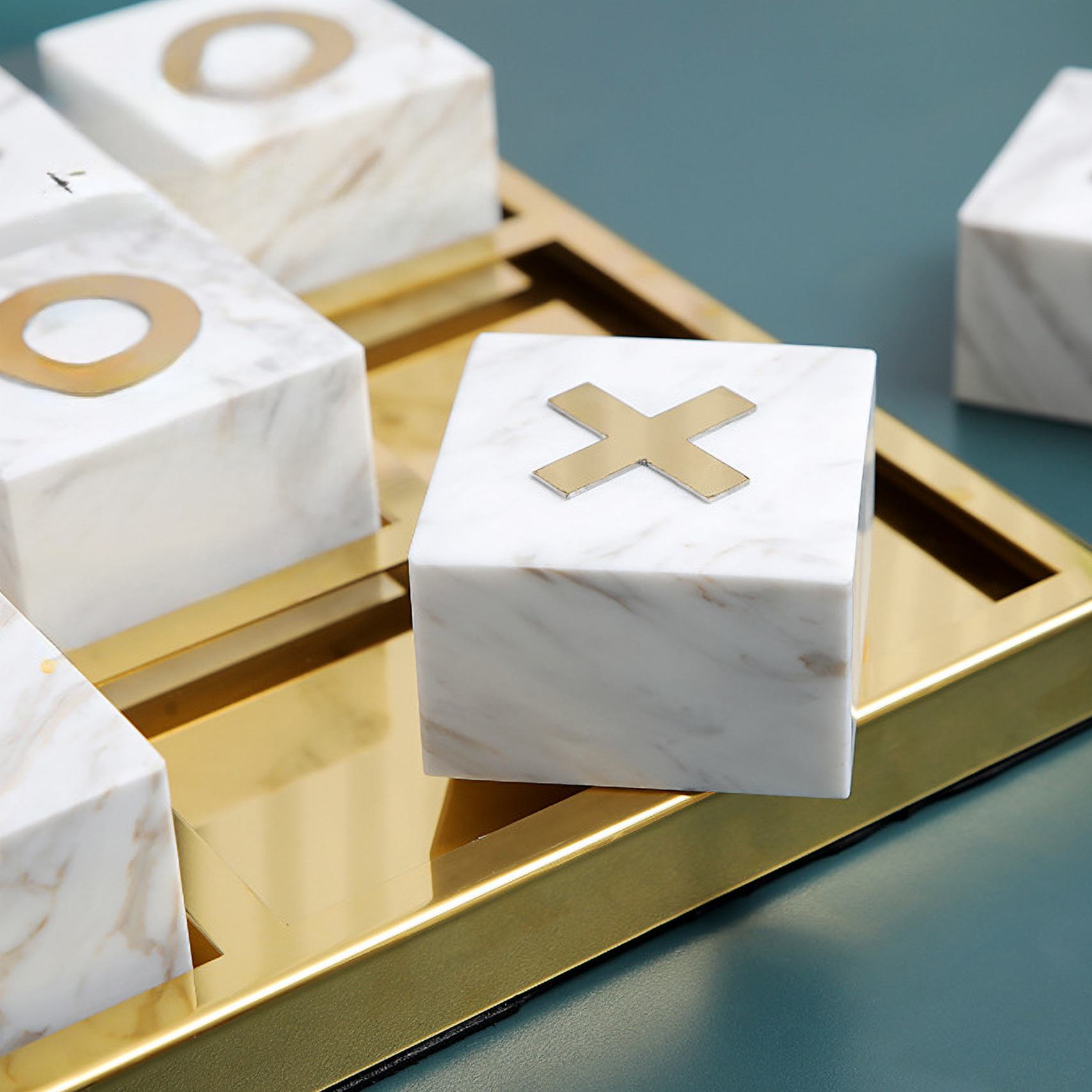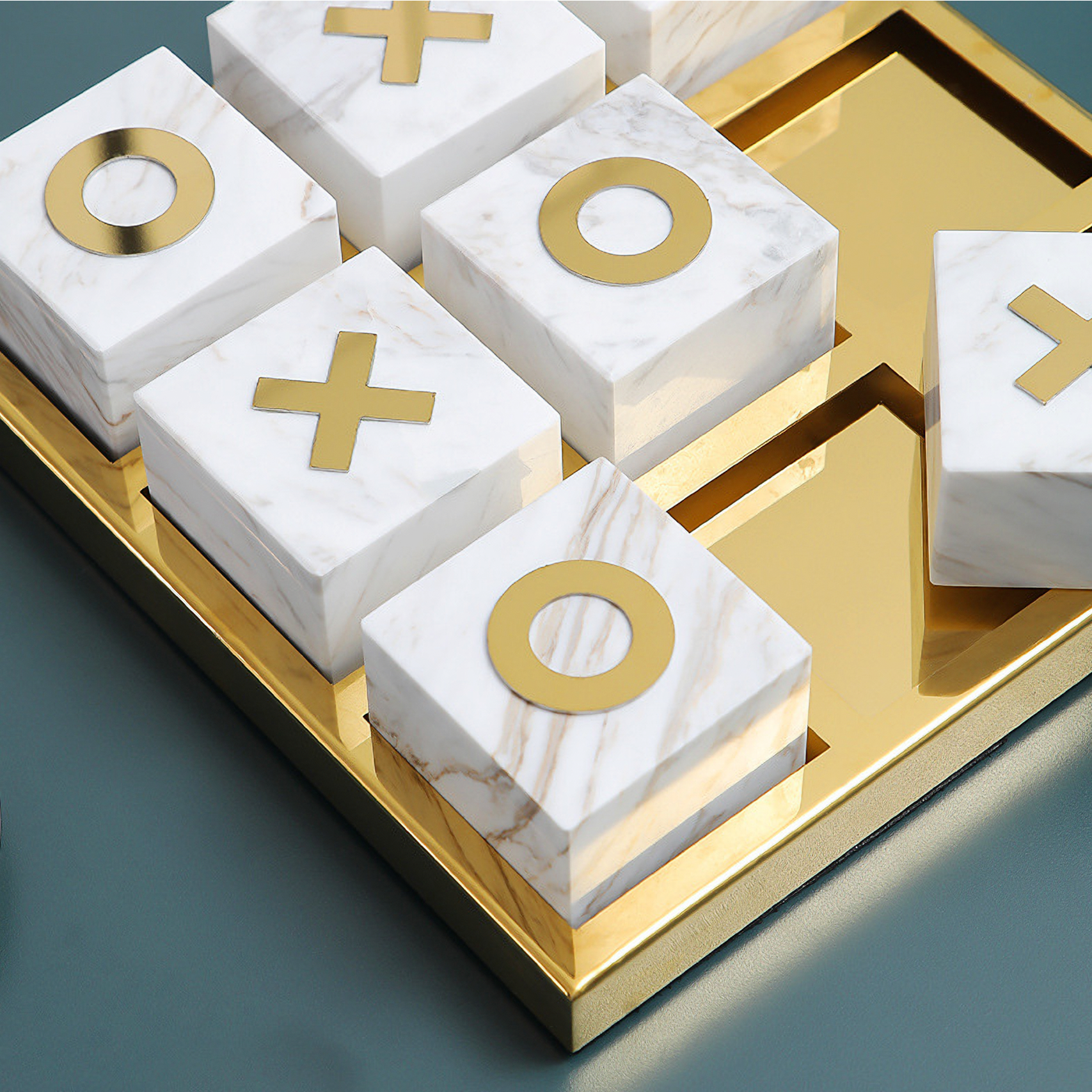 XO مصنوع يدويا من الرخام الصب مع قاعدة من الفولاذ المقاوم للصدأ، قطعة فخمة باللونين الذهبي مع الأبيض مناسبة للديكور، مثالية للهدايا.